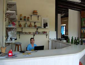 Fotografias do interior do casarão em 2014, no canto superior, da esquerda para direita: no térreo, vista da escada de acesso ao primeiro pavimento e ao lado vista da loja de produtos artesanais feito por moradores e remédios caseiros. No primeiro pavimento abriga o Museu do Negro que conta a história da cidade e da cultura afro-brasileira.